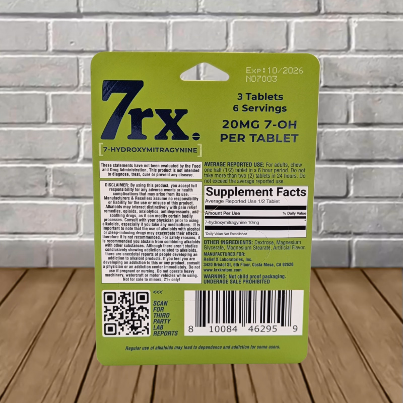 - Potent 20mg of 7-hydroxymitragynine per tablet
