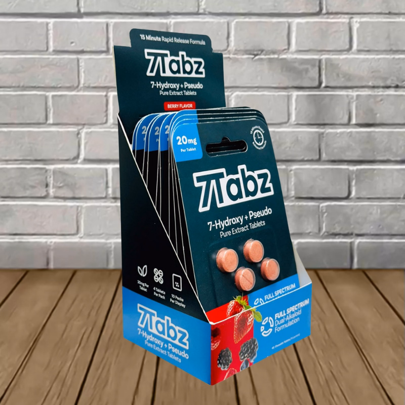 7Tabz 7-Hydroxy + Pseudo Pure Extract Tablets come in a single blister pack. Every pack contains four high-purity extract tablets, each infused with 20mg of a rapid-release 7OH + Pseudo extract formula. This 4ct option has been carefully and precisely dosed to be enjoyed across eight servings. Each tablet is scored down the middle so users can easily split it into two servings of 10mg or 20mg total per tablet.