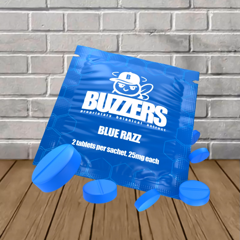 Each sachet includes 2 tablets containing 25mg of Buzzers’ proprietary botanical. The formula blends botanical extracts, cat’s claw extract, microcrystalline cellulose, magnesium stearate, and natural binders. Customers can choose between single packs or convenient 15-pack bulk options.