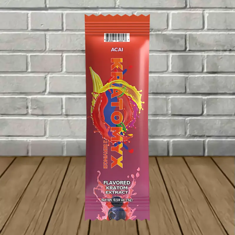 Kratomyx Flavored Kratom Extract Powder comes in a single-use pouch. Every pouch contains 5 grams of their signature fully water-soluble blend designed to revitalize the user. This 5-gram blend is considered two servings, with each serving containing a potent 50mg of mitragynine for a total of 100mg per stick pack.