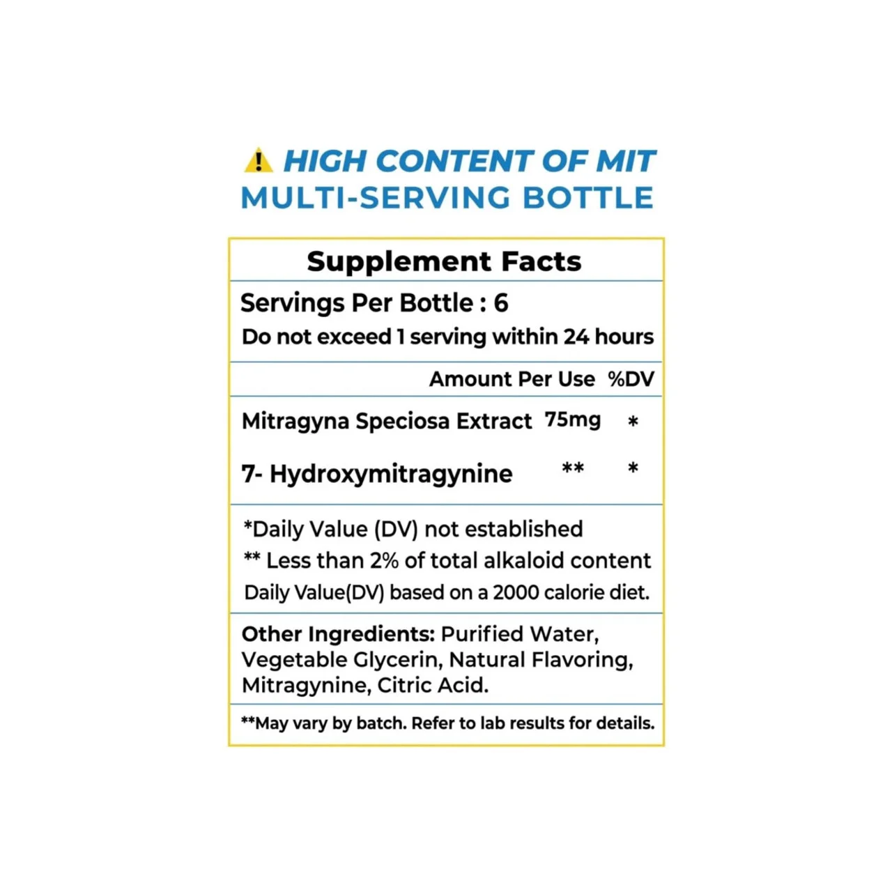 - Every Bottle Contains Six Servings Of Highly Concentrated Mitragyna Speciosa Extract With 75mg Of Mitragynine