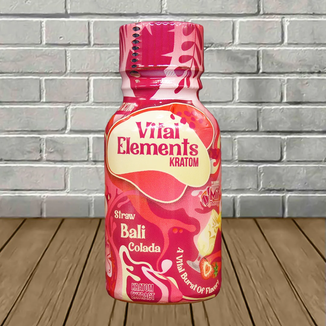 Vital Elements Straw Bali Colada Kratom Extract Shot 15ml is a high-quality liquid extract shot that perfectly encapsulates the Bali Kratom strain! It is also one of the better-tasting products on the market, melding the perfect combination of fresh strawberries and pina colada.